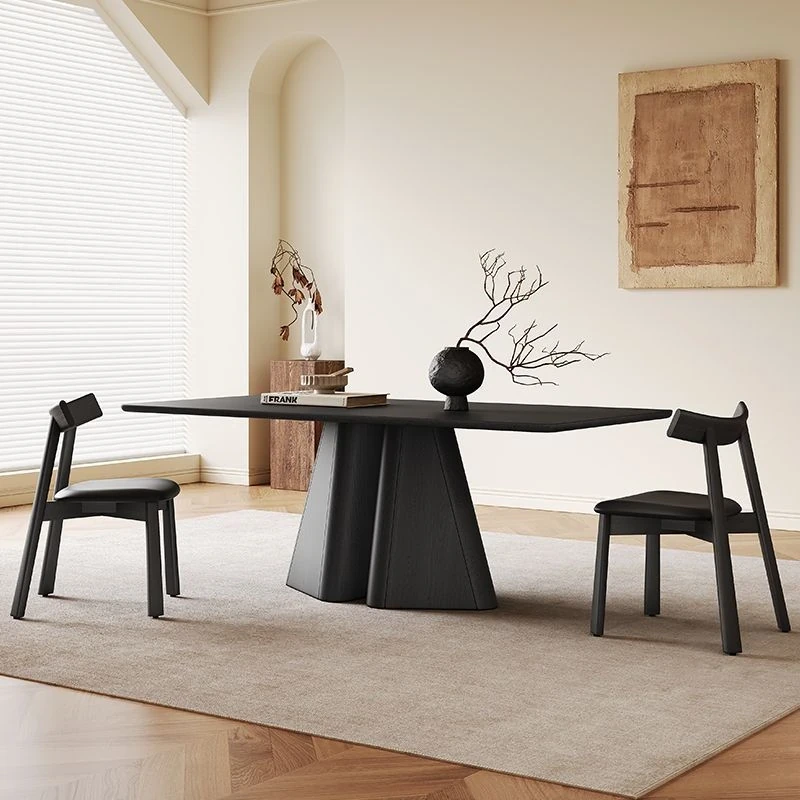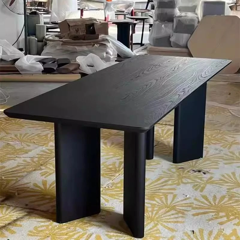 2024年新款!フランスのレトロスタイルの無垢材ダイニングテーブル - シンプルでエレガントな長方形、イタリアンデザインのブラックウッド。家庭にぴったりの温かみある空間を演出します。