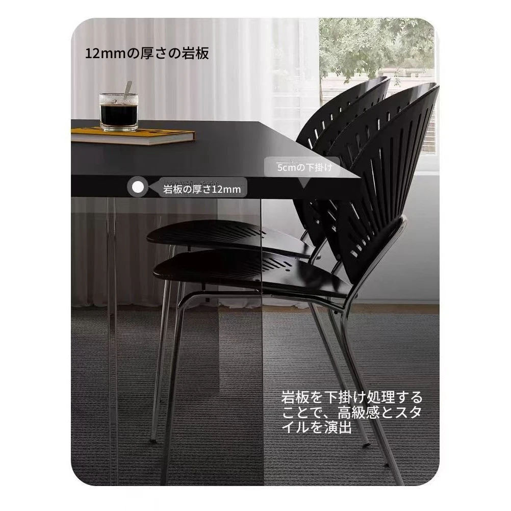 全黒アクリル岩板の浮遊型長方形ダイニングテーブル - モダンでシンプル、小型住宅にぴったりの軽奢スタイル!高級感あふれるデザインで、おしゃれな食卓を演出します。