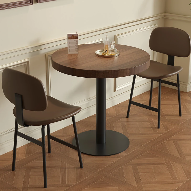 高品質な無垢材使用!おしゃれなカフェ用テーブル&チェアセット - 正方形・円形・ダブル用・小型4人掛け!ハンバーガーやデザート店に最適なスタイルで、心地よい食事空間を演出します!