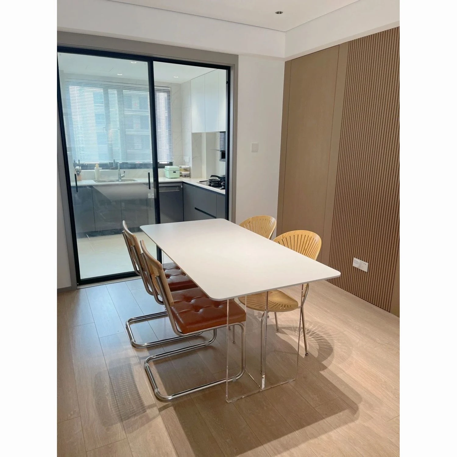 純白アクリル浮遊岩板ダイニングテーブルセット | モダンでシンプルなデザイン、小スペースにも最適な長方形の食卓 | 家庭用にぴったり!