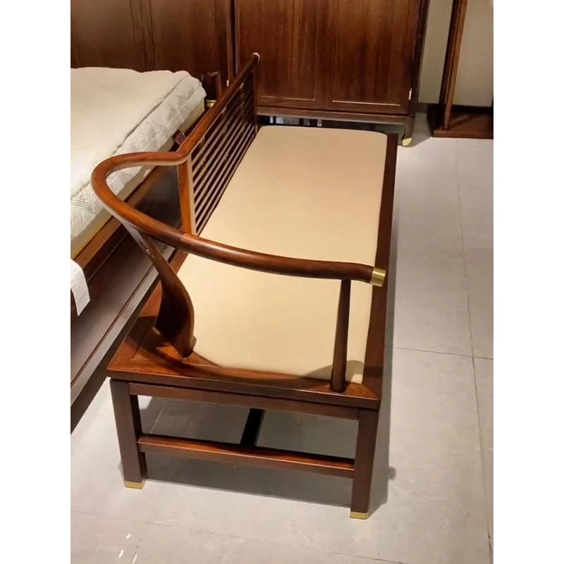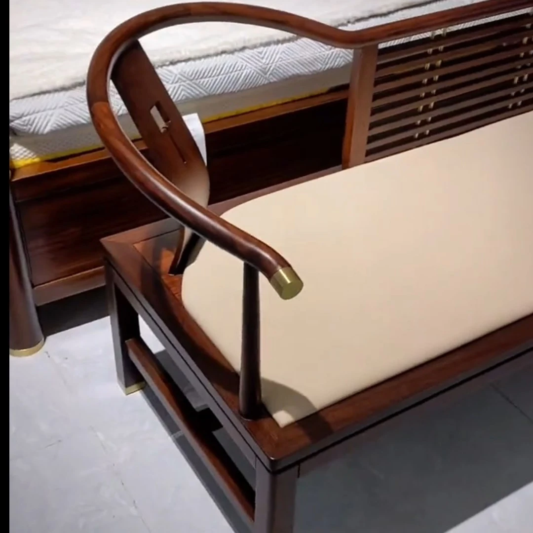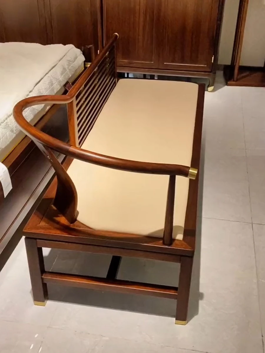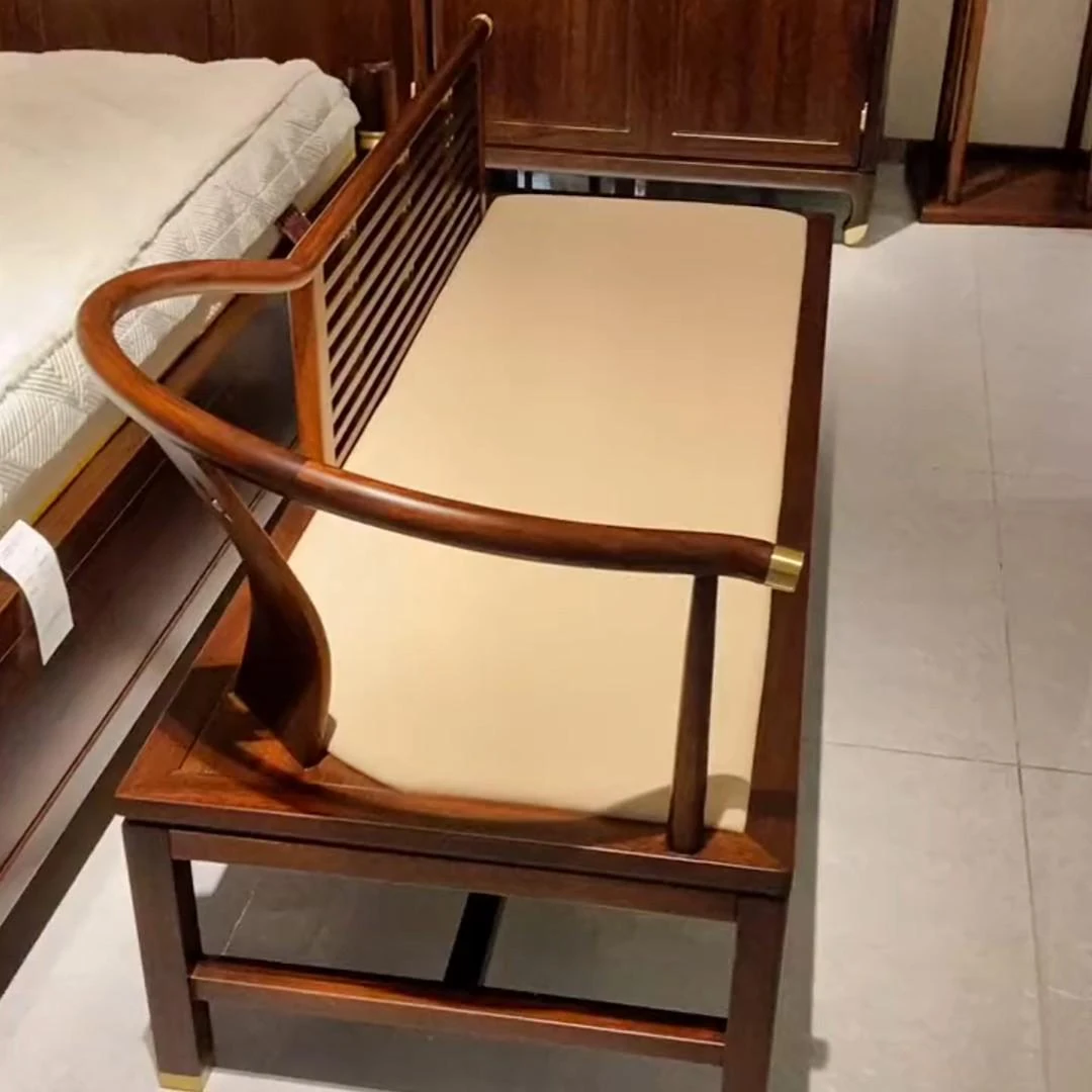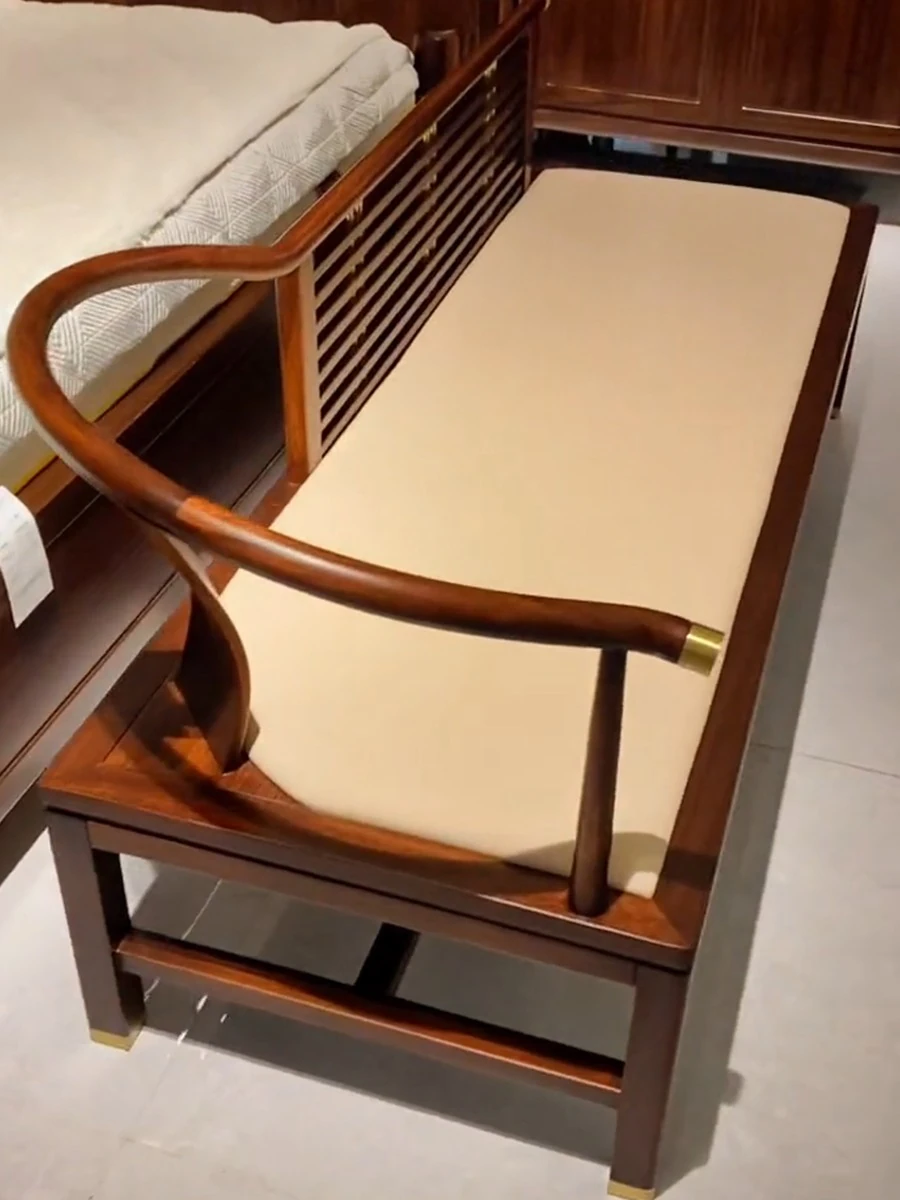 Elegant Chinese-Style Blackwood Reclining Lounge Chair - Minimalist Chaise for Shoes, Zen-Inspired Design Perfect for Living Room or Bedroom, Luxurious Touch for Bedside Seating