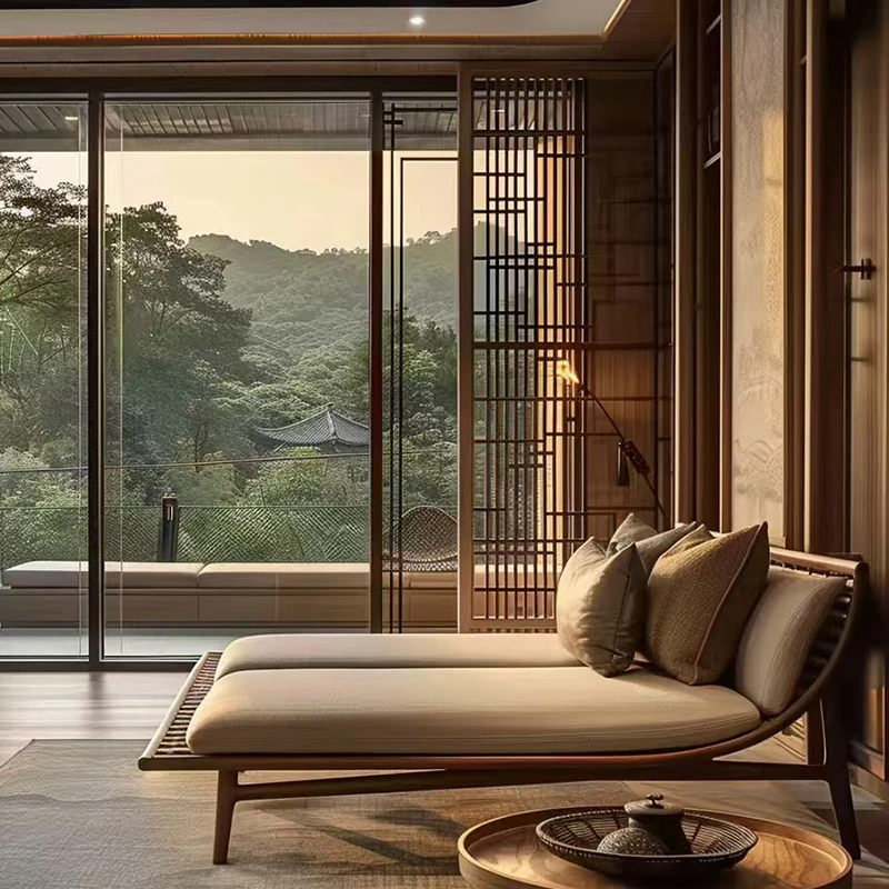 New Chinese Style North American Black Walnut and Ash Wood Meditation Bed - Zen-Inspired Chaise Lounge for Hotels, B&Bs, Offices, and Living Rooms