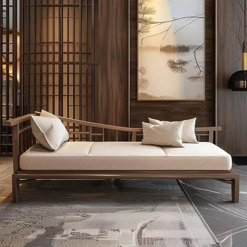 North American Black Walnut & Ash Wood Daybed - Elegant Sofa Bed for Living Room, Hotels, and Guesthouses - New Chinese Style Zen-Inspired Chaise Lounge