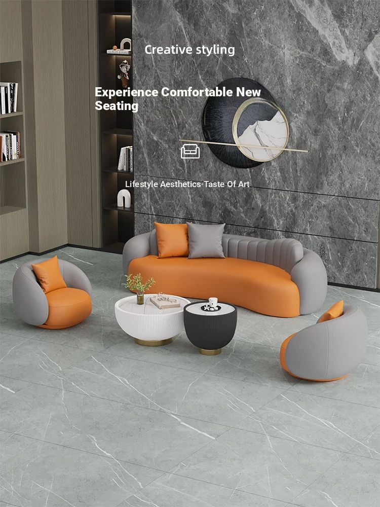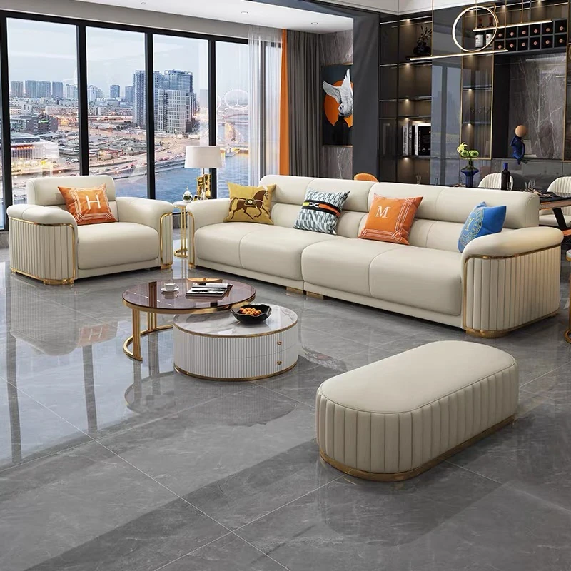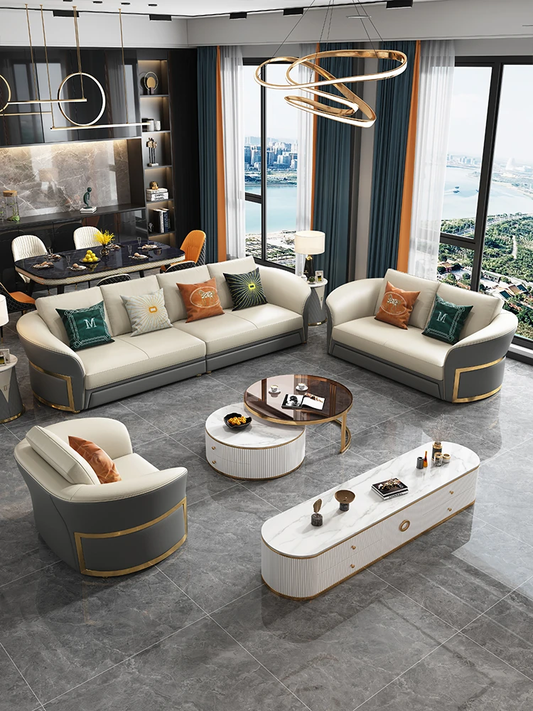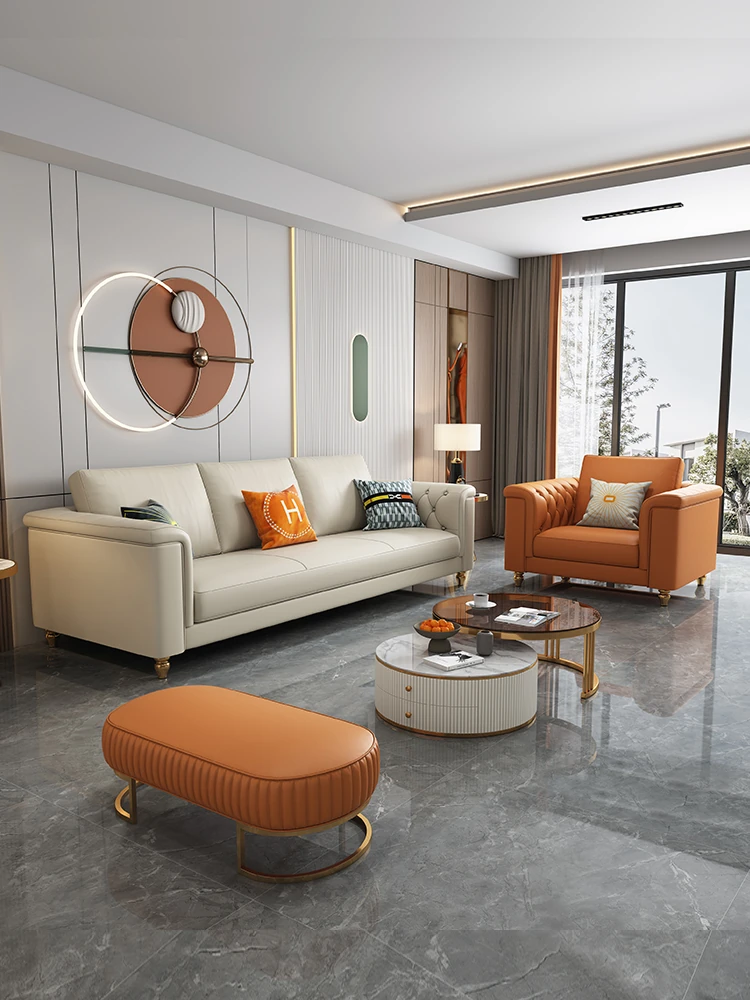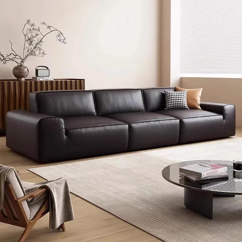 Luxury Genuine Leather Sofa - Premium Top Grain Cowhide, Modern Minimalist Design for High-End Villas and Apartments, Perfect for Living Room with Modular Arrangement