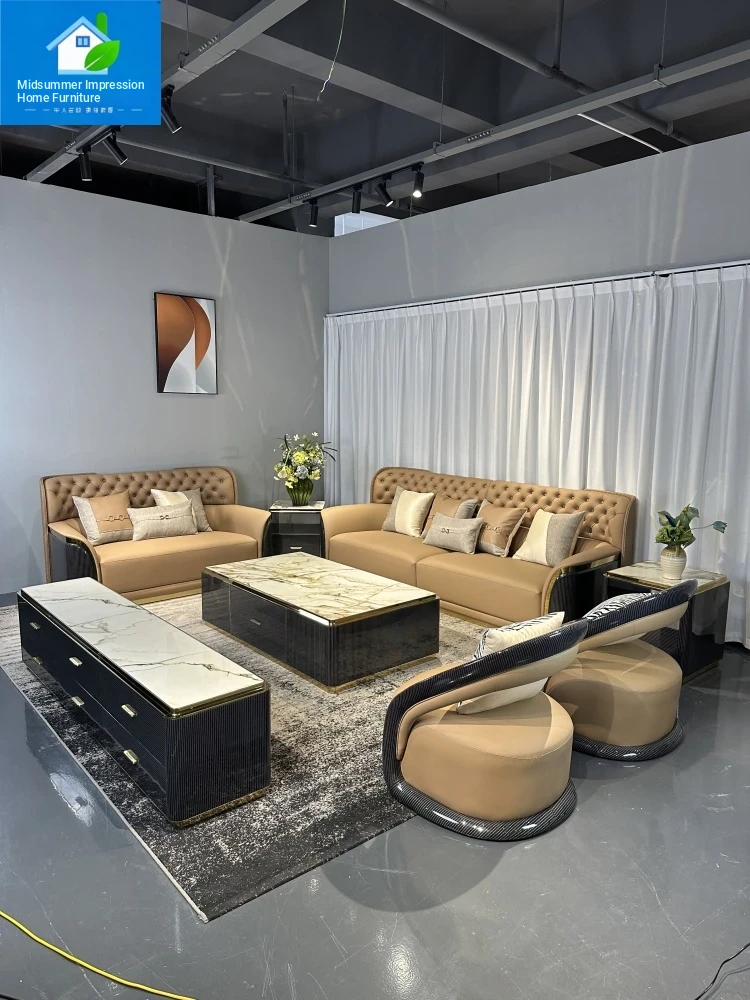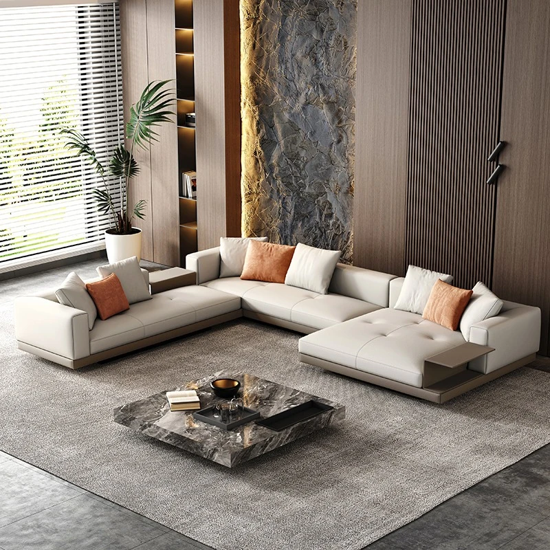 Luxury Italian Modern Leather Corner Sofa Set for Villas and Spacious Apartments - Designer Collection for Stylish Living Rooms