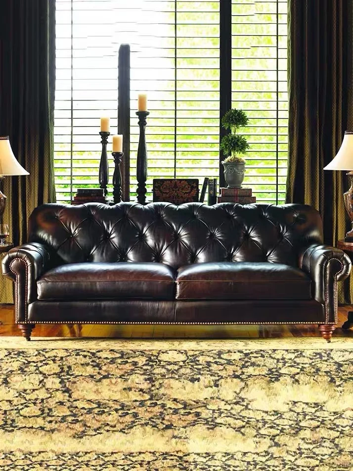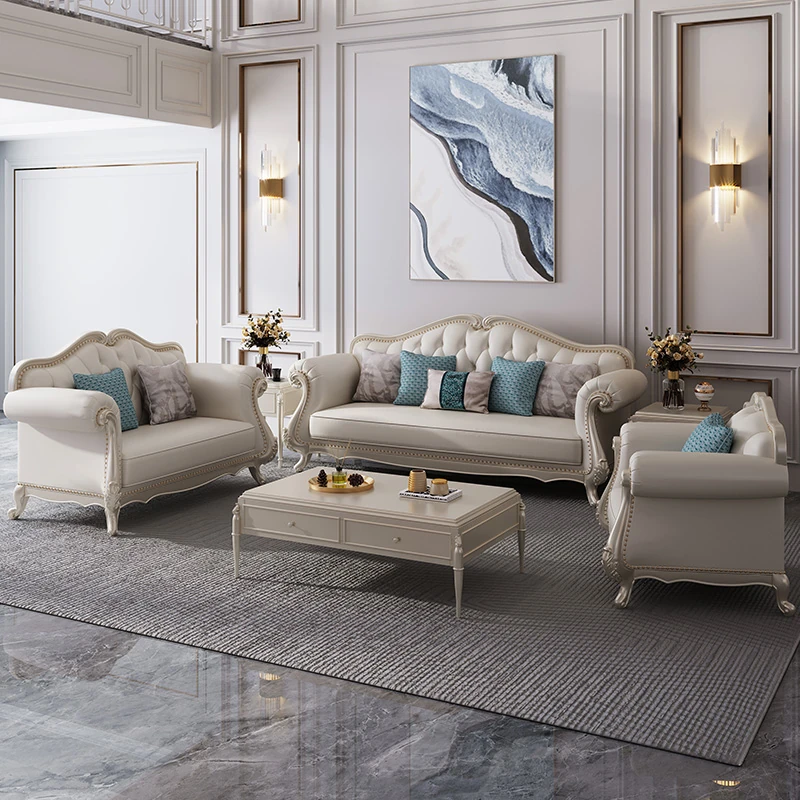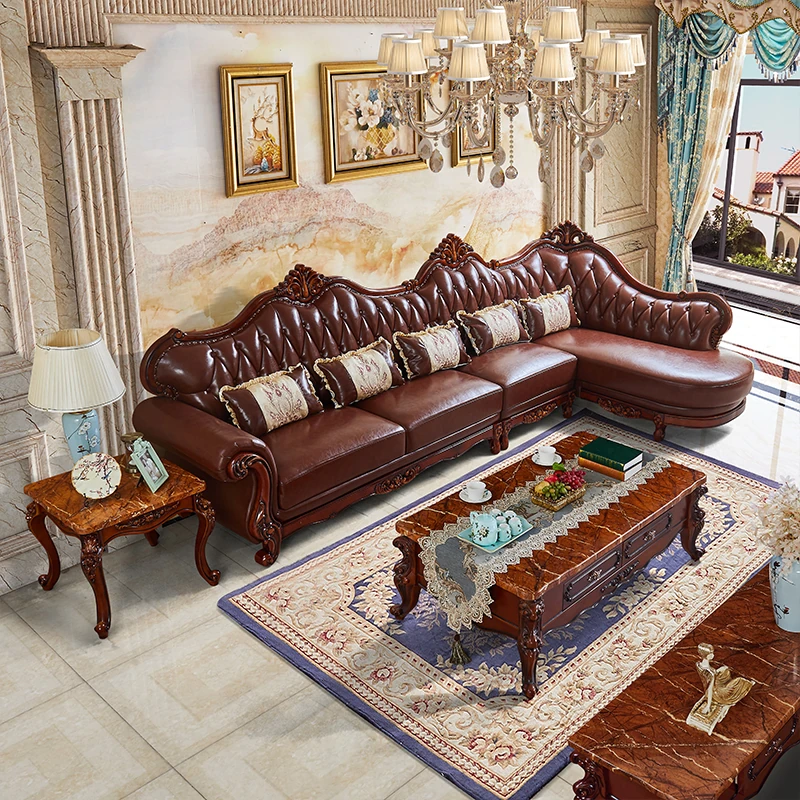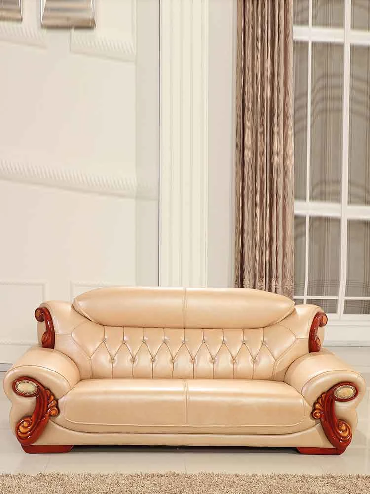 Premium Genuine Leather Sofa Set for Living Room - Elegant European Design with Solid Wood Carvings, Spacious 4-Seater Suitable for Any Home Size, Delivered to Your Doorstep