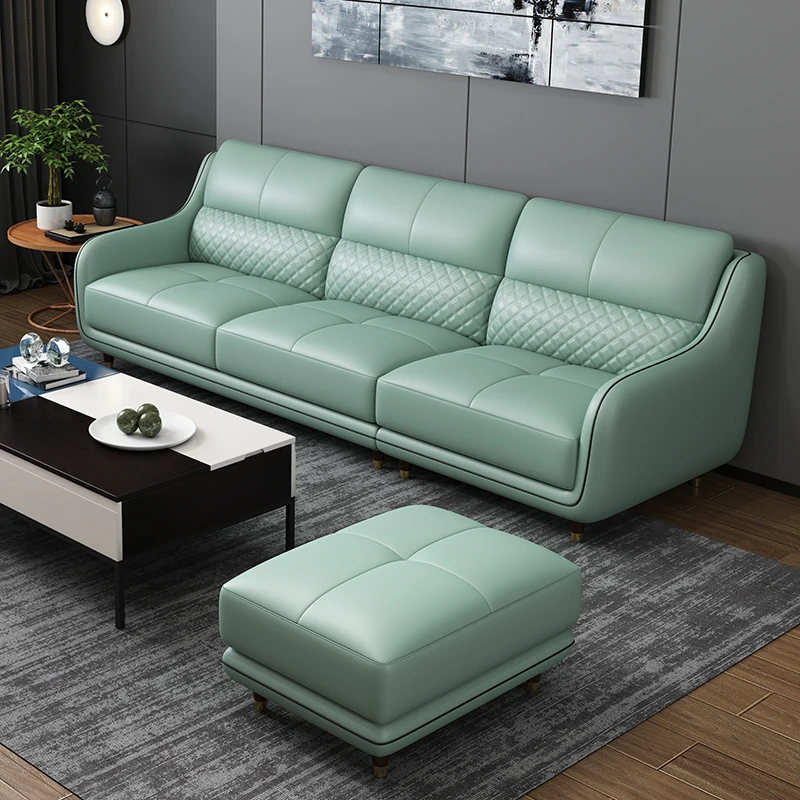 Modern Minimalist Italian Style Genuine Leather Sofa Set for Small Spaces - Luxury Three-Seater Couch in Top-Grain Cowhide for Your Living Room