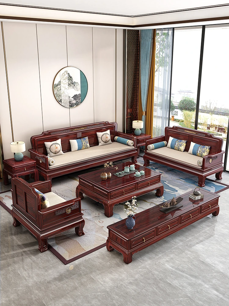 Modern New Chinese-Style Solid African Rosewood Sofa Set - Versatile for Winter and Summer, Classic Red Wood Living Room Straight Sofa