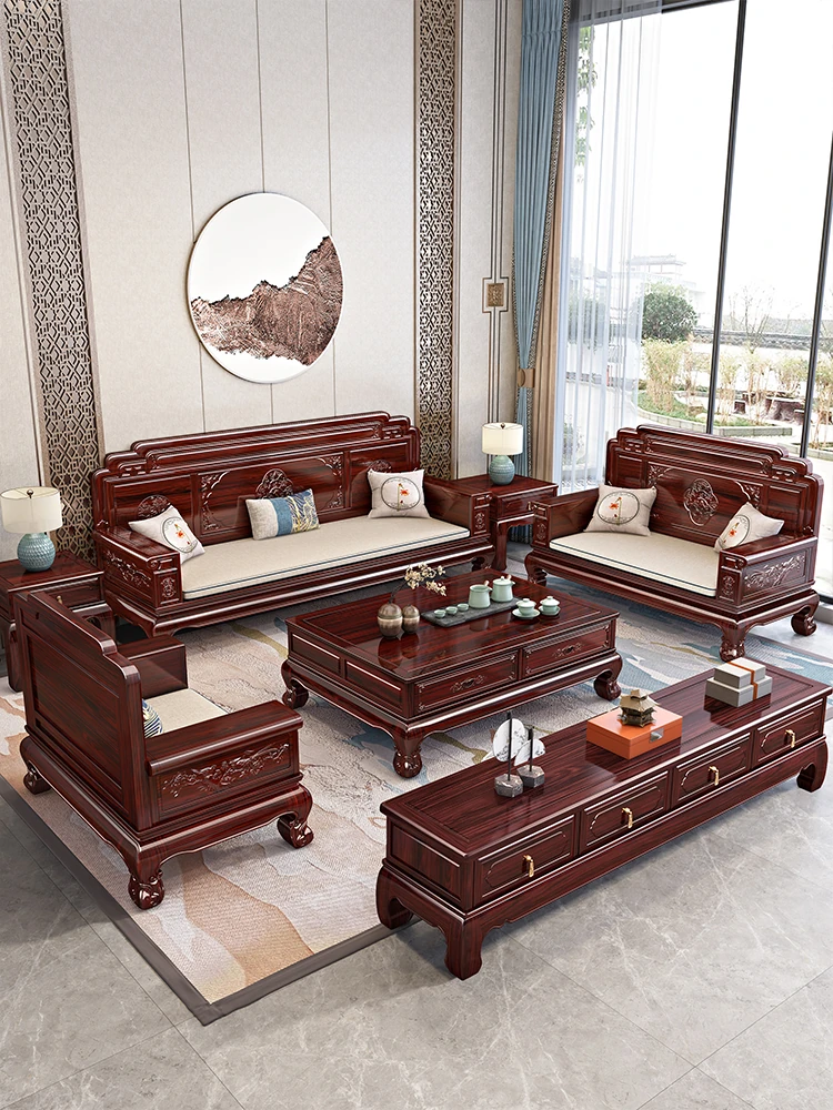 Luxury Chinese Style Blackwood Sofa Set for Living Room - Versatile for Winter & Summer, Perfect for Any Size Home, Antique Design for High-End Villas, Embrace Elegant Comfort!