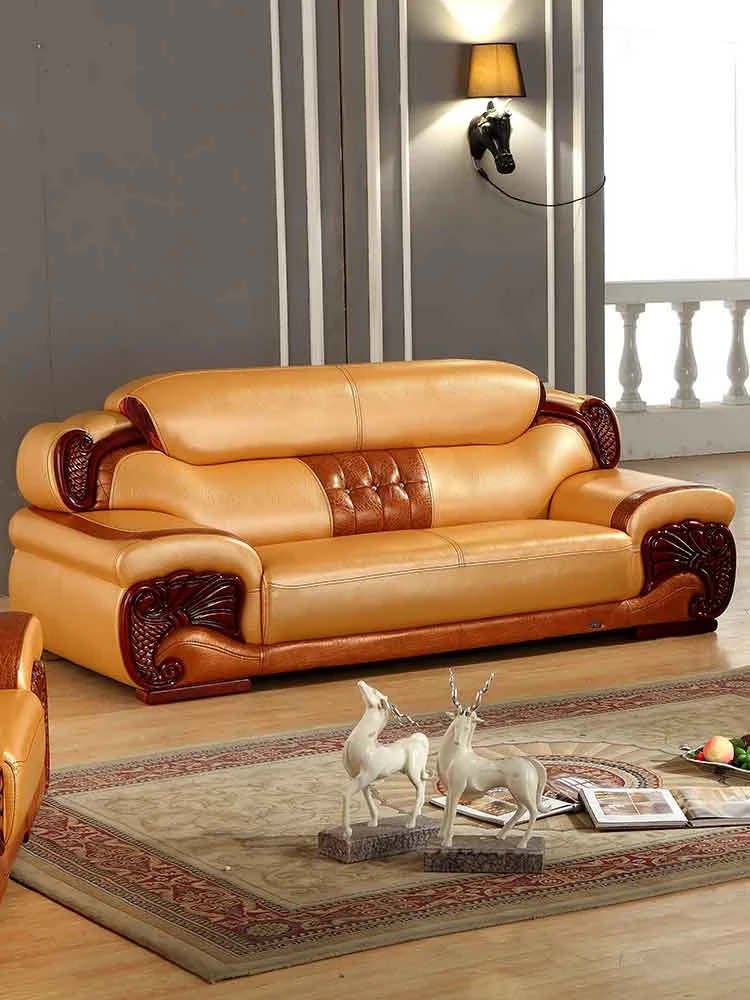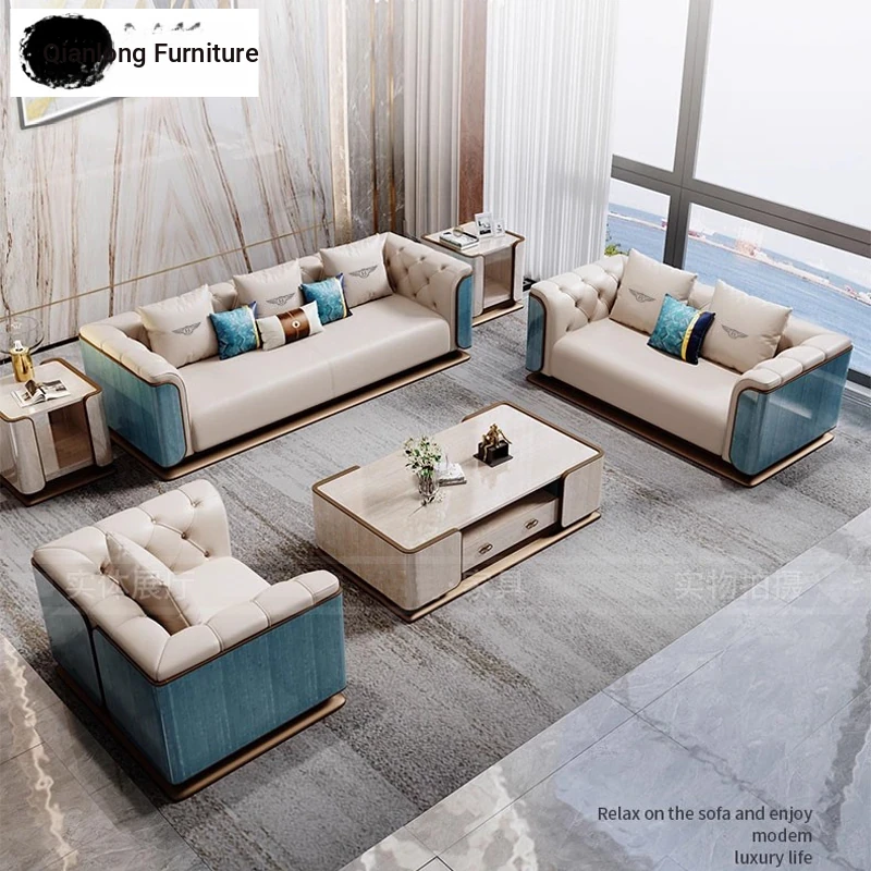 Modern American Luxury Leather Sofa - Premium Top-Grain Leather, Perfect for Villas and Small Living Rooms, Stylish 3-Seater Sofa Set with Versatile 1-2-3 Configuration