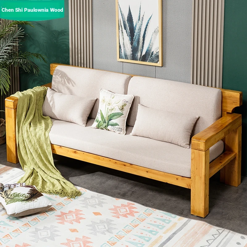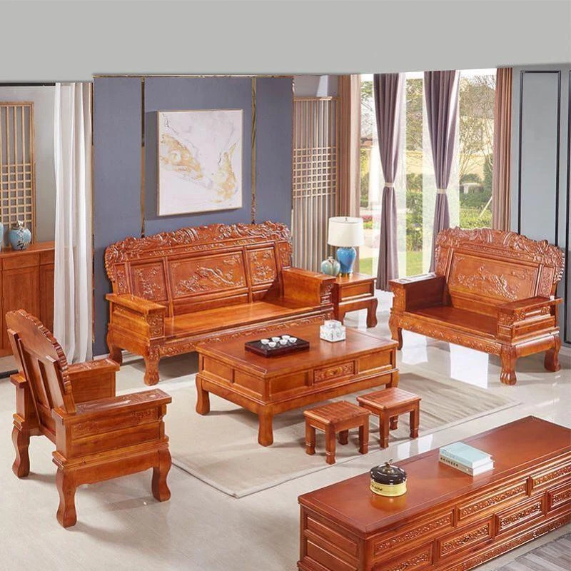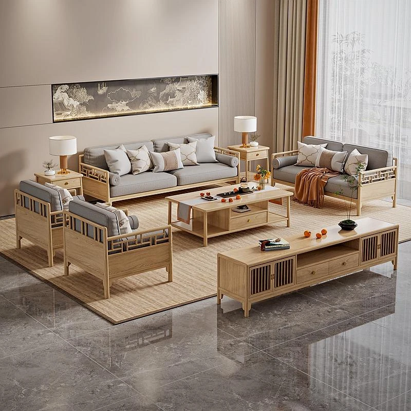New Chinese Style Solid Wood Sofa Set - Minimalist Design for All Seasons, Space-Saving Storage Solution for Small Living Rooms, Perfect Wooden Furniture for Home