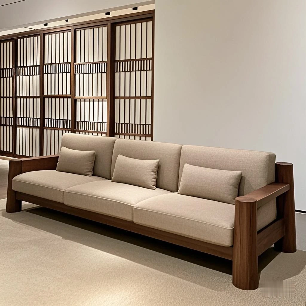 North American Black Walnut Solid Wood Sofa - Versatile 3-Seater for Living Rooms of All Sizes, Perfect for Year-Round Comfort!