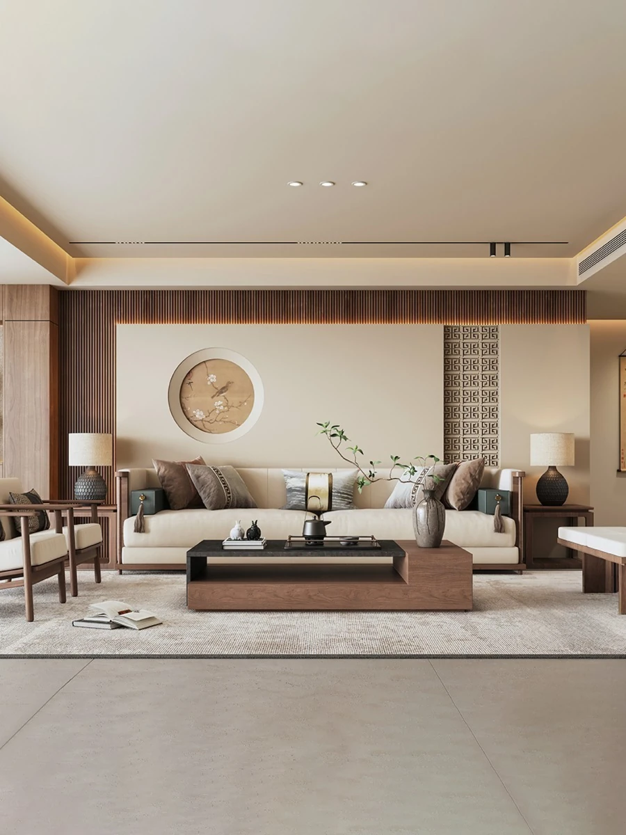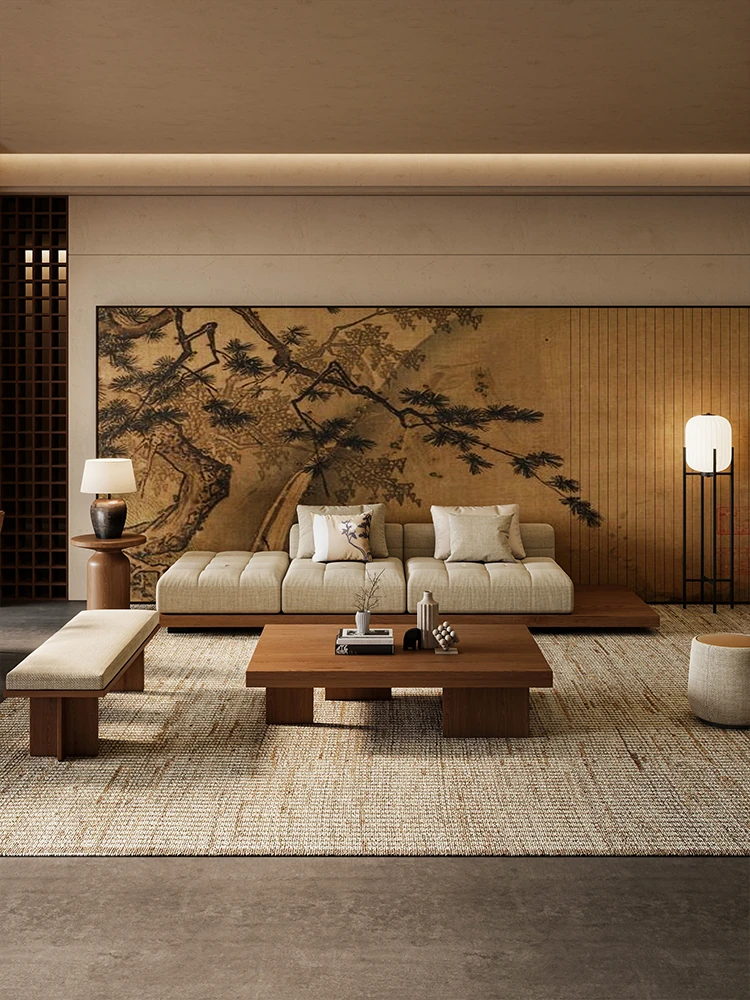 Elegant Song-style Aesthetic Sofa Set with Solid Wood Coffee Table - High-End New Chinese Living Room Furniture 2025 Collection