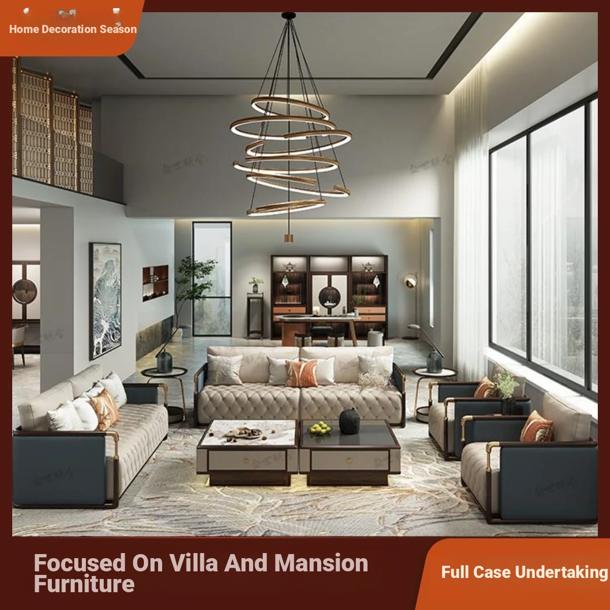 New Chinese Style Light Luxury Sofa Set - Full Solid Wood, Genuine Leather, High-End Living Room Combination for Spacious Homes - Perfect for Elegant Interiors!