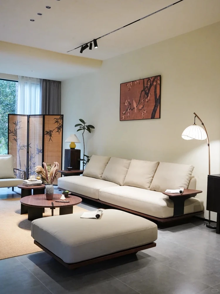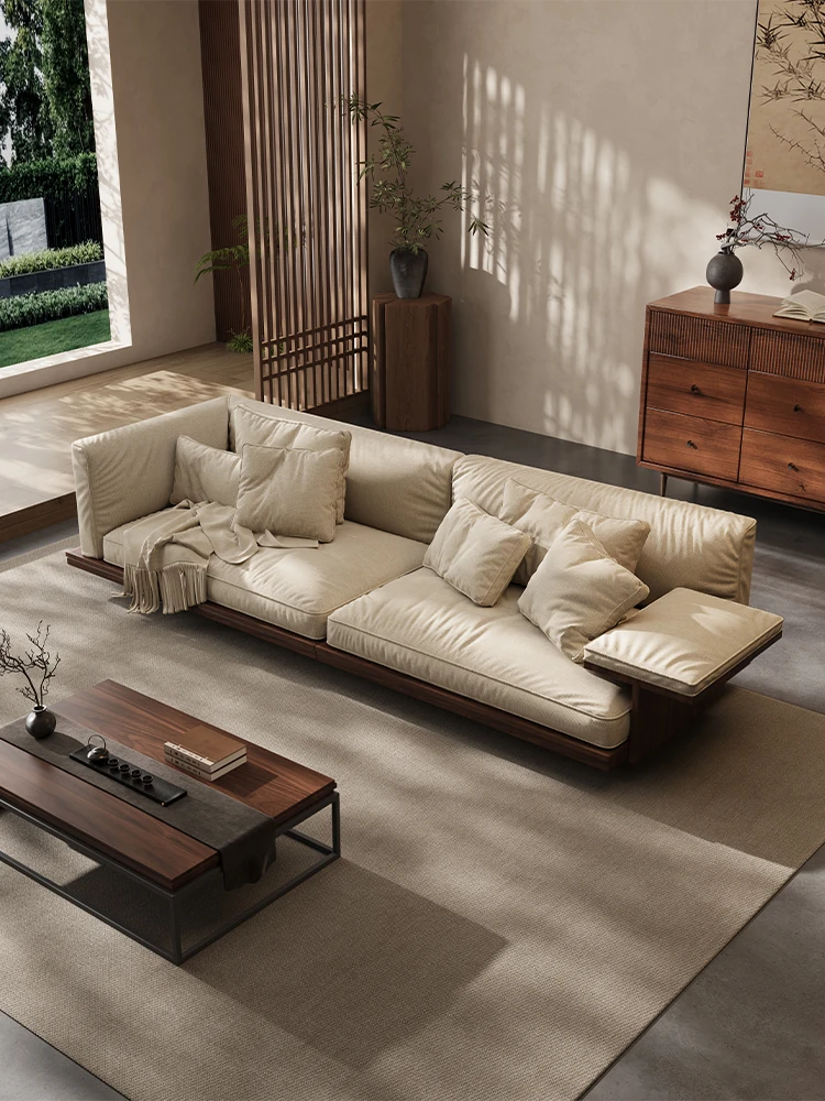 New Chinese Style Solid Wood Sofa Set - Zen-Inspired Song Aesthetic Walnut Modern Minimalist Living Room Furniture 2025 Collection