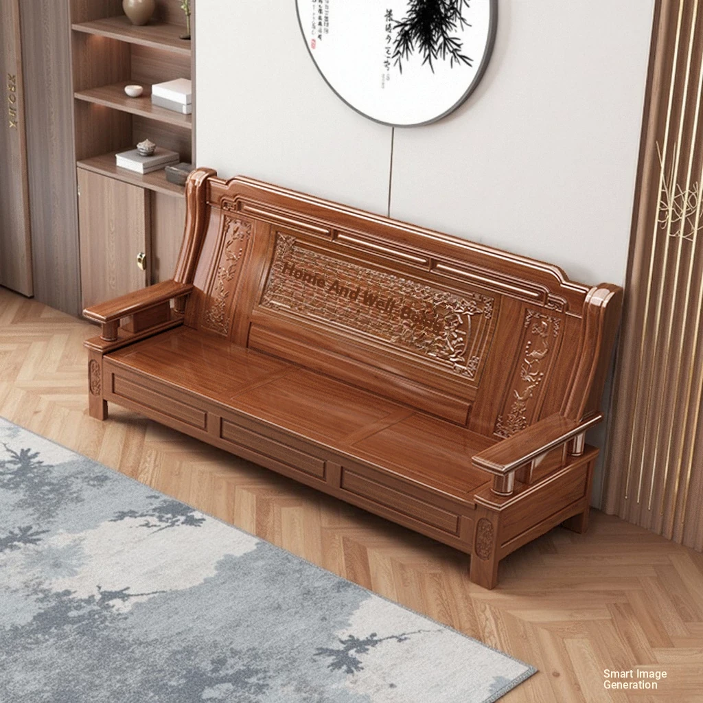 Solid Wood Sofa - Chinese Style, Compact for Small Homes, Budget-Friendly, Classic Three-Seater with Aromatic Camphor Wood for Rural Living - Perfect for Cozy Spaces!