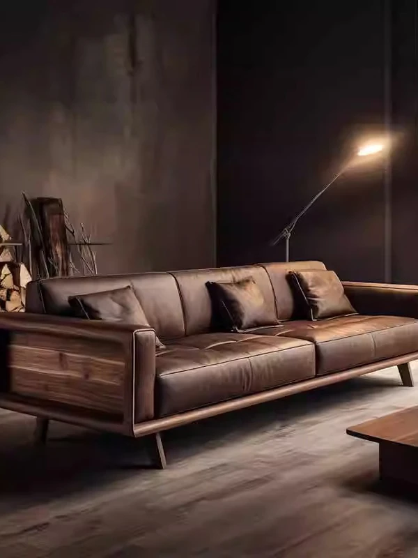 New Chinese Style North American Black Walnut Sofa - Minimalist, Comfortable, and Luxurious Leather Sofa for Small Living Rooms - Perfect for Modern Homes!