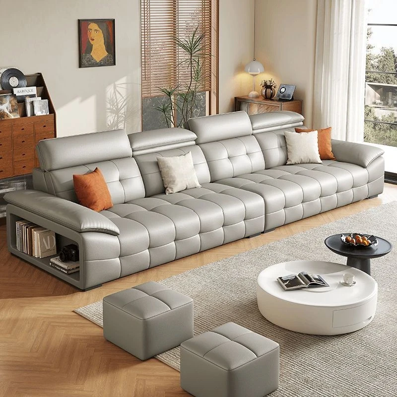 Luxury Genuine Leather Sofa - Premium Top Grain Cowhide for Modern Minimalist Villas, Perfect for Any Living Room Size - Stylish Modular Furniture Set