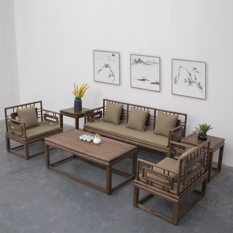 North American Black Walnut Solid Wood Sofa - Modern Minimalist Design for Spacious Living Rooms & Offices, Luxury New Chinese Style Furniture