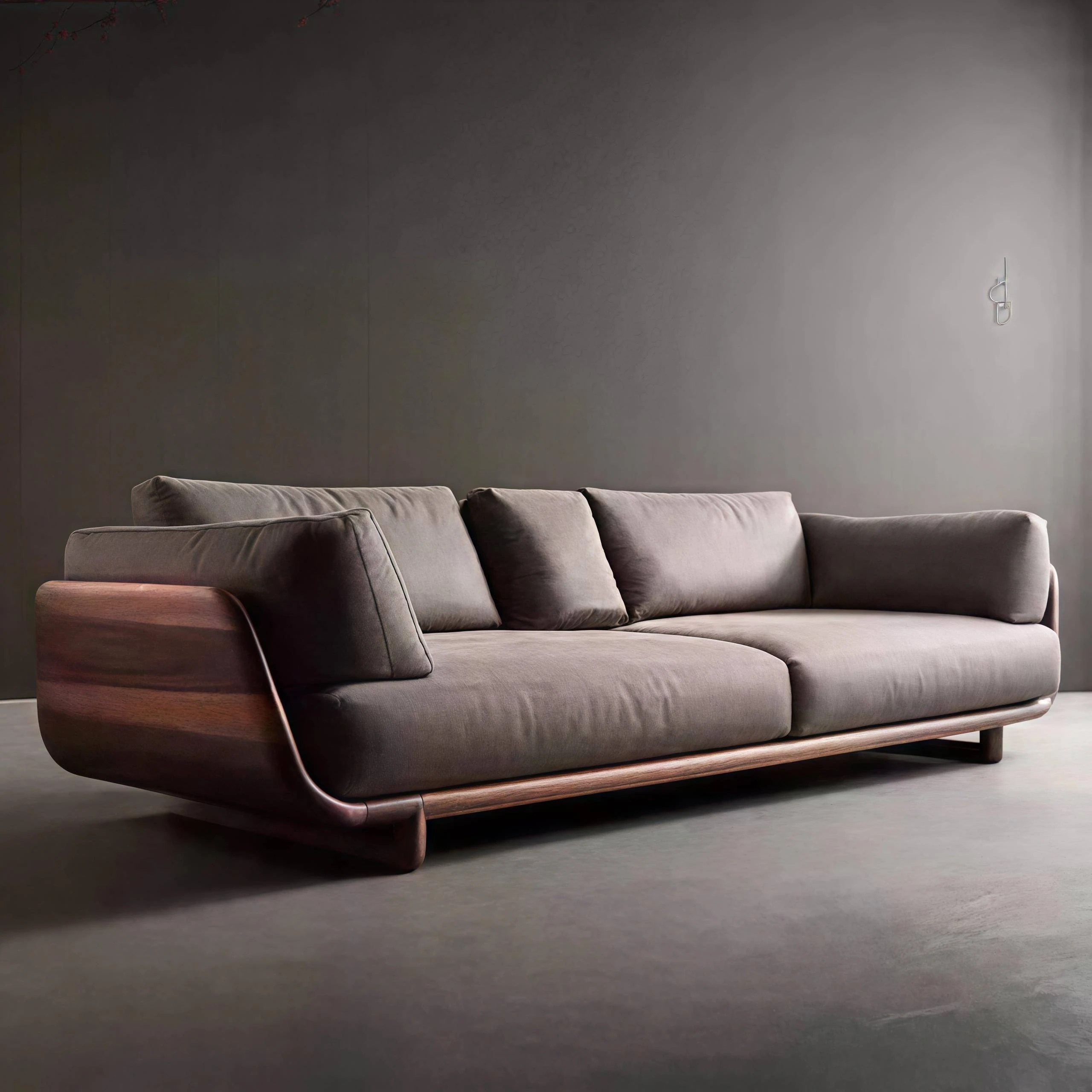 新中式イタリアンミニマリストソファ - 和モダンの侘寂風、ウォールナット材使用の3人掛けソファ。シンプルで洗練されたデザイン、高級感あふれる新作、会所やリビングにぴったり!