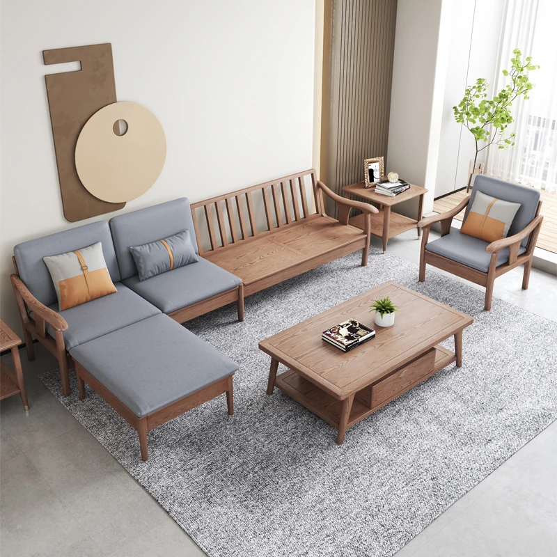 宋氏美学新中式実木ソファセット - シンプルでモダンなデザインのサンプルルーム向け、心を癒す禅の雰囲気を持つ家具。民宿や別荘に最適なリラックス空間を演出します。