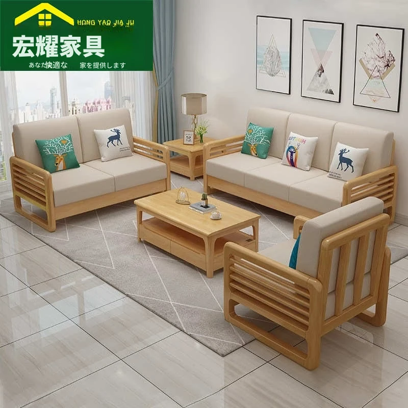北欧風ホワイトアッシュ無垢材ソファ|モダンテクノロジー布製|冬夏両用の新中式シンプルデザイン|快適な3人掛けリビングソファで、洗練された空間を演出!
