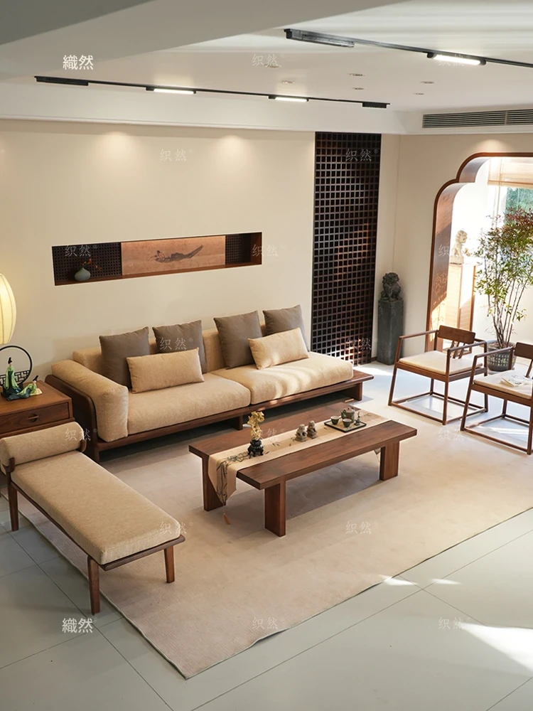 新中式デザインの北米産ブラックウォールナットオフィス用ソファとテーブルのセット - 宋代美学を取り入れたロハンベッド、2025年最新モデルで快適な空間を演出!