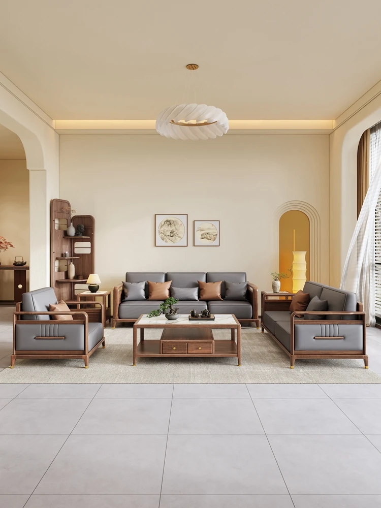新中式デザインの北米産ブラックウォルナット真皮ソファ - 宋の美学を取り入れたイタリアンラグジュアリーのシンプルオフィス家具。上質な素材と洗練されたデザインで、あなたの空間に特別な魅力をプラスします。