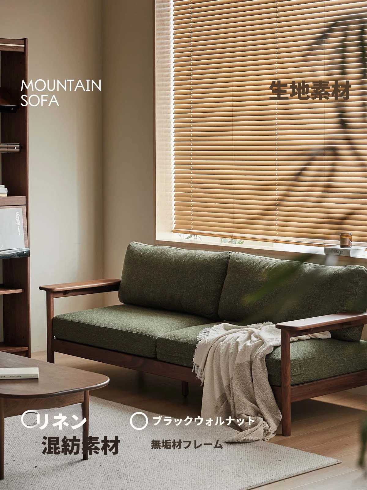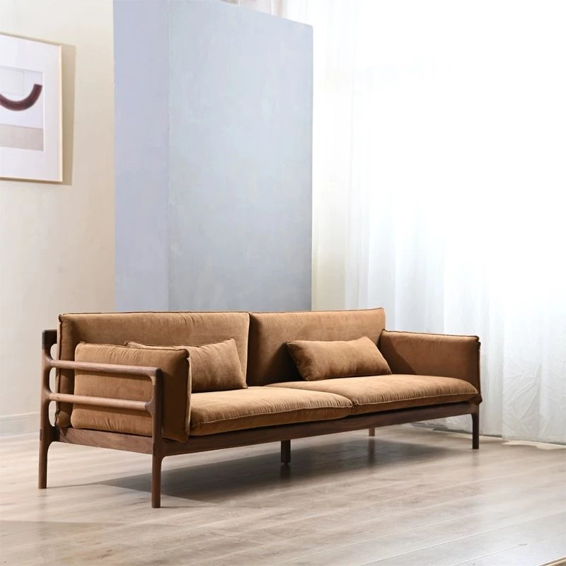 北米産ブラックウォールナット全実木ソファ | 小型リビングにぴったりの北欧風シンプルデザイン | 冬も夏も快適に使える高品質ファブリックソファ
