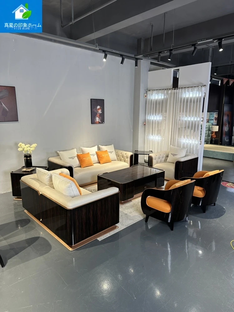 イタリアンラグジュアリー本革ベントレーソファセット - 高級感あふれる無垢材と一級牛革使用、広々としたリビングにぴったりの別荘向けデザイン。あなたの空間を特別なものに!
