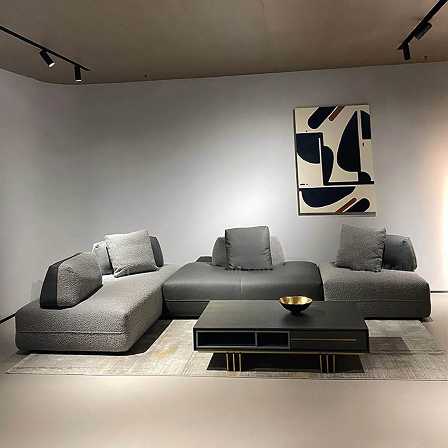 イタリアンミニマリストデザインのモジュラーソファ - 大平面向けの真皮製、肘掛けなしの多人数用リビングルームソファ。高級感あふれるスタイルで、あなたのヴィラを洗練された空間に変えます!