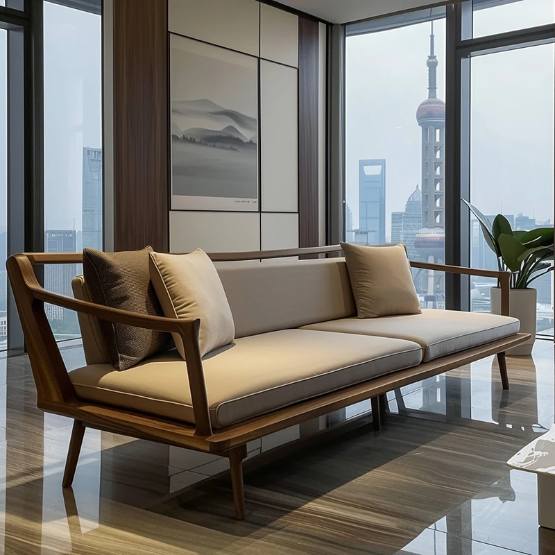 北米産ブラックウォールナット無垢材リビングルーム用ソファ 大型モダンデザイン オフィス向けのシンプルで高級感あふれる新中式家具
