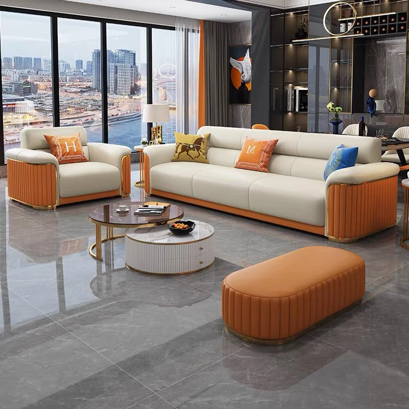 高級イタリアンデザインの本革ソファ - ヴィラスタイルのラグジュアリーなリビングにぴったり!上質なトップグレインレザーを使用し、全室を華やかに演出。洗練された雰囲気で、贅沢な生活空間を実現します。