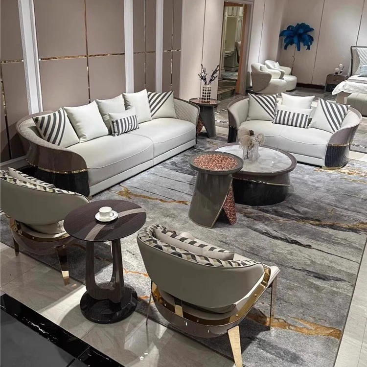 イタリアンラグジュアリー本革ソファ|モダンな別荘スタイル|豪華なリビングに最適|ベントレー風ギャビンシー寝室用ダブルベッド|全室家具揃いで贅沢な空間を演出!