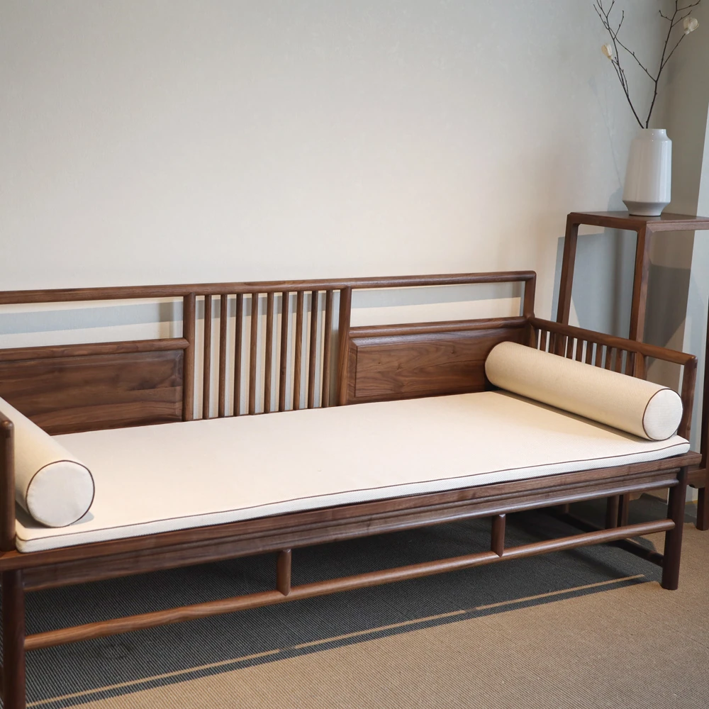 新中式スタイルの無垢材ロハンベッド - 北米産ブラックウォルナット使用、冬夏兼用。小さなリビングにぴったりな禅の雰囲気を醸し出す洗練されたソファ。心安らぐ空間を演出します。